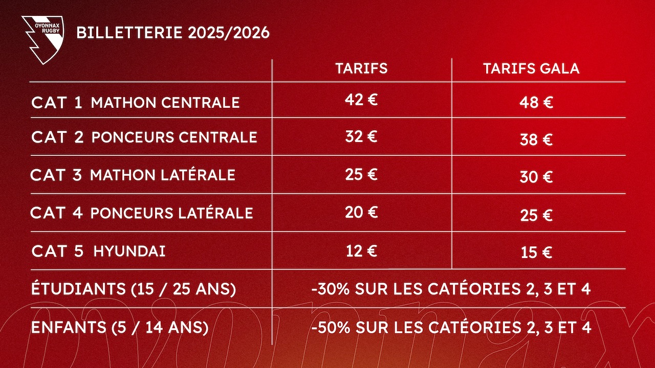 N’hésitez pas, appelez le club au 04 74 81 67 77 ou envoyez un mail à l’adresse billetterie@oyonnaxrugby.com