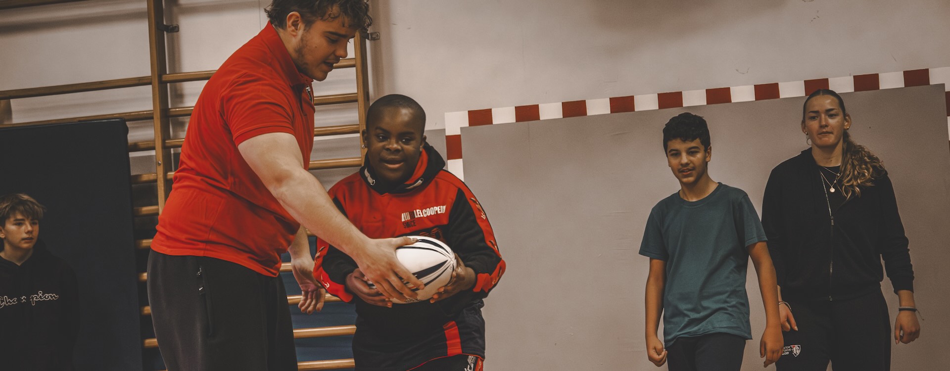 Aussi, plusieurs entraineurs se sont déplacés au sein de l’IME (Institut médico-éducatif) Les Sapins à Oyonnax pour intervenir auprès de jeunes du centre, afin de les initier au rugby grâce à des ateliers ludiques. Sortir de l’ordinaire, avec des choses simples comme un travail sur la motricité, est important pour ces jeunes qui s’initient à un sport plus que jamais accessible à tous.